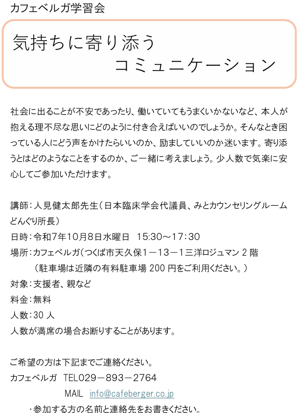 このたびカフェベルガ学習会を開催するにあたり、参加者を募集いたします。